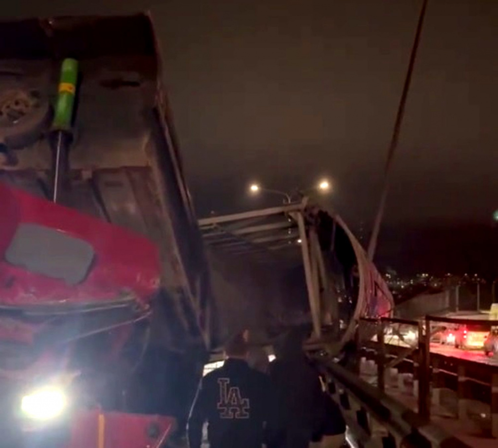 В районе Каменск-Шахтинского на трассе М4-Дон грузовик с поднятым кузовом снес пешеходный мост. Движение по трассе затруднено.