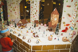 Самый большой в России пряничный домик построили в горах Сочи. Традиционное новогоднее сооружение-лакомство появилось в отеле «Сочи Марриотт Красная Поляна». Для изготовления необычного «пряника» понадобилось 40 килограммов сливочного масла, 62 килограмма сахара, 400 штук яиц и 80 килограммов пшеничной муки. Общий вес имбирного домика составил около тонны, высота его превысила пять метров. Внутри разместилась мини-экспозиции в стиле сказочного леса и волшебного городка, вдоль одной из стен проложена железная дорога.