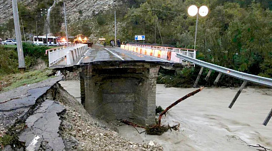 На Черноморском побережье Кавказа продолжаются обильные ливни. Сегодня утром в результате паводка на реке Макопсе был поврежден 20-метровый автомобильный мост. На федеральной трассе А-147 прервано движение автомобилей на участке между населенными пунктами Лазаревское и Туапсе.