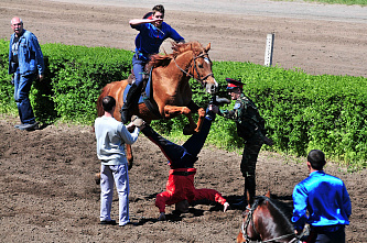 В минувшее воскресенье на Ростовском ипподроме стартовал очередной,112-й, скаковой сезон. Символическую ленточку по такому знаменательному для всех, кто любит лошадей, случаю перерезали губернатор Ростовской области Василий Голубев и председатель попечительского совета Ростовского ипподрома Сергей Кислов.