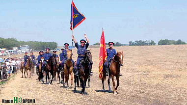 На Поле казачьей славы на въезде в станицу Кущевскую прошла межрегиональная патриотическая акция в честь 75-летия знаменитой казачьей атаки – «Салют и слава юбилею навеки памятного дня»