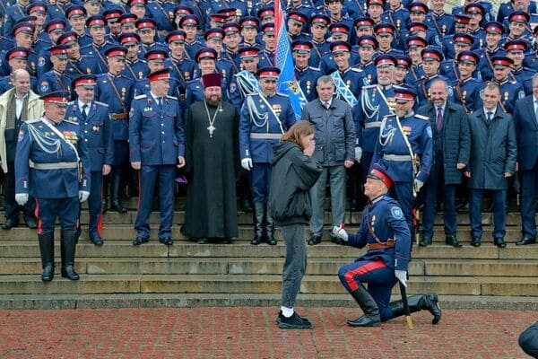 Вернувшихся казаков встречали в Новочеркасске у Вознесенского войскового собора. После торжественных церемоний двое участников парада сделали предложения своим невестам, после строй прошел по столице донского казачества с песней «День Победы».