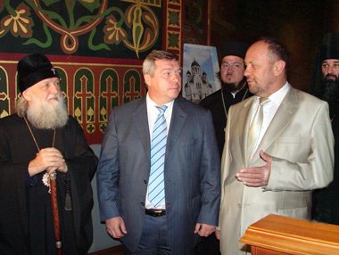 Рабочая поездка губернатора области Василия Голубева в Новочеркасск началась с посещения третьего по величине православного храма России Свято-Вознесенского Войскового кафедрального собора, где его встречали мэр города Анатолий Кондратенко, архиепископ Ростовский и Новочеркасский Пантелеимон, настоятель собора отец Филарет.