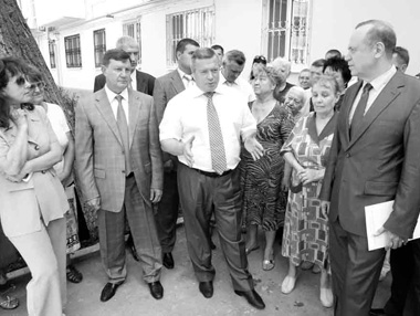 Во дворе губернатора окружили жители соседних домов, которые пока ждут своей очереди на капитальный ремонт. Проблемы, конечно, есть в Таганроге более 2200 многоэтажек. Из области выделено 200 миллионов, городской бюджет присовокупил свои 100 миллионов, а значит ремонтные работы в жилых домах будут продолжены.