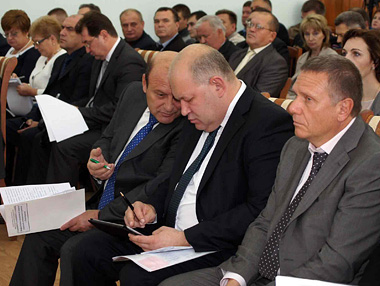 С подробным анализом положения дел выступили перед собравшимися руководителями муниципальных учреждений, активом города отраслевые министры области.