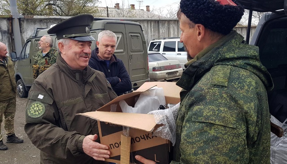 В. Водолацкий в одном из казачьих подразделений, воюющих в Донбассе. Источник фото: телеграм-канал В. Водолацкого - https://t.me/s/rostovdonbass.
