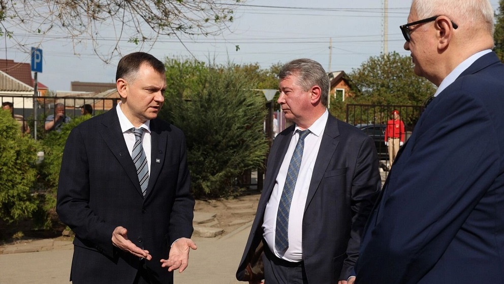 Во время недавнего визита Ю. Слюсаря в Батайск. Судя по всему, разговор в Р. Волошиным (в центре) на обмен любезностями не походит... Источник фото: правительство Ростовской области.