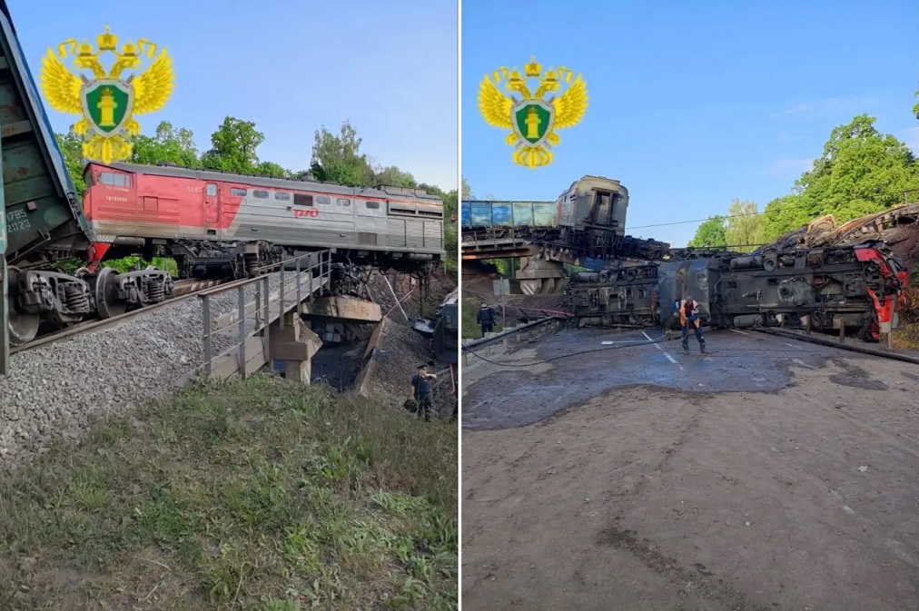 Второй инцидент произошел в Курской области, на 48-м километре трассы Тросна – Калиновка в Железногорском районе области. Здесь обрушился железнодорожный мост, по которому двигался грузовой состав. Как и первом случае, опоры этого моста были взорваны.