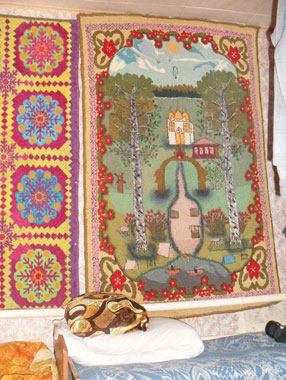 Ковры ручной работы — последний писк в оформлении интерьеров, их с удовольствием используют для декора именитые дизайнеры. С этой точки зрения дом семейства Капустиных — супермоден: здесь такими коврами покрыты стены, полы, диваны. Все их сделала хозяйка, Зоя Григорьевна.