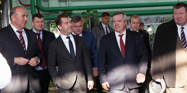 После церемонии передачи электровоза в административном корпусе НЭВЗа состоялась беседа премьер-министра России Дмитрия Медведева и губернатора Ростовской области Василия Голубева. Обсуждались проблемы занятости населения и ситуация с очередями в детские сады в регионе.