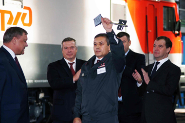 В конце минувшей недели на Новочеркасском электровозостроительном заводе премьер-министр России Дмитрий Медведев принял участие в церемонии передачи ОАО «Российские железные дороги» построенного здесь электровоза ЭП20 — «Олимп».