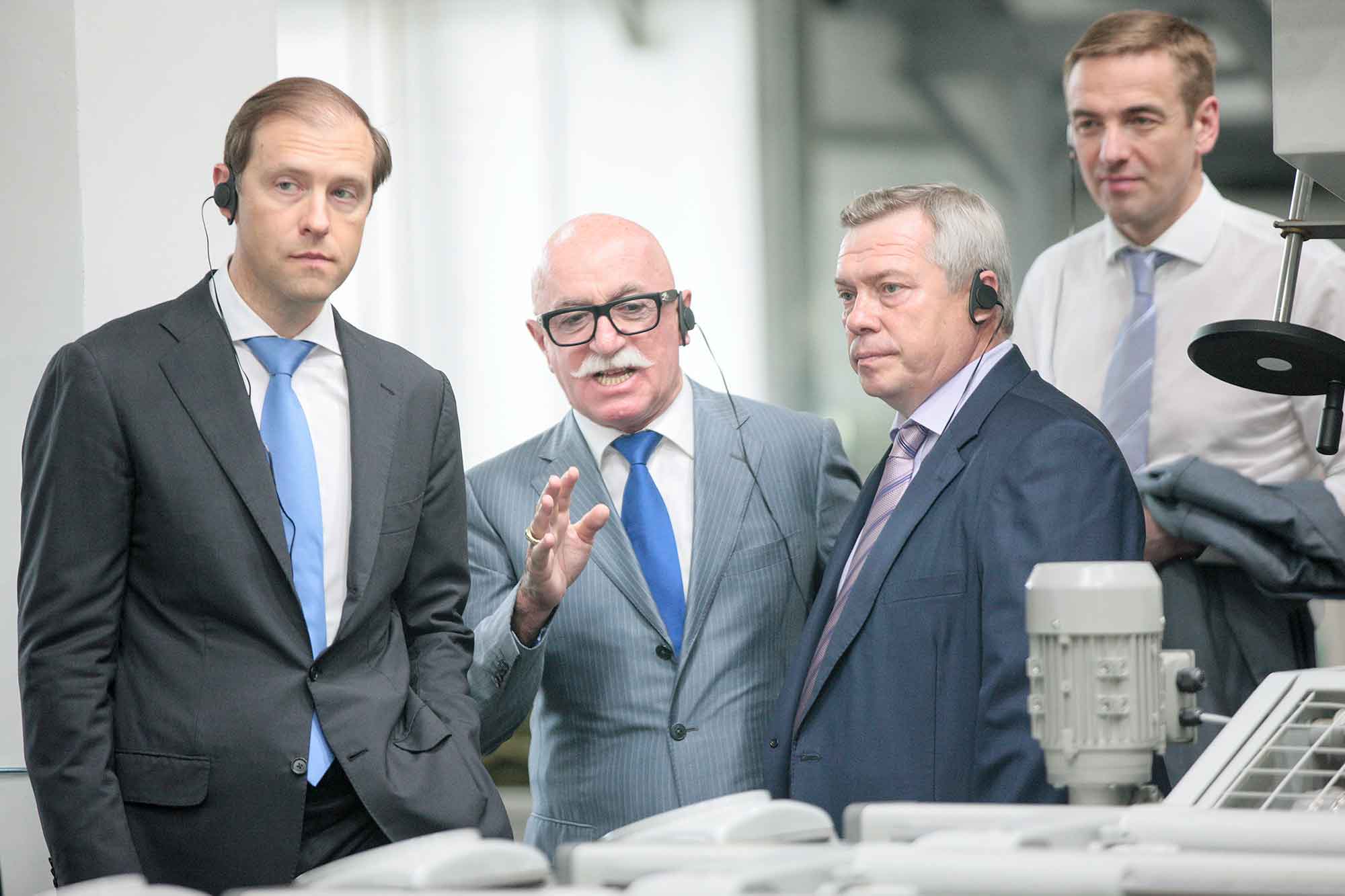 Глава Минпромторга вместе с врио губернатора области Василием Голубевым дал старт новому текстильному производству в Шахтах и принял участие в постановке на конвейер нового комбайна на «Ростсельмаше».