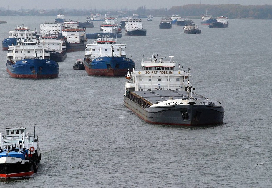 Сильный ветер, выдувший воду из Дона, заставил суда собираться в караваны и ждать у моря погоды. Источник фото: politobzor.net.
