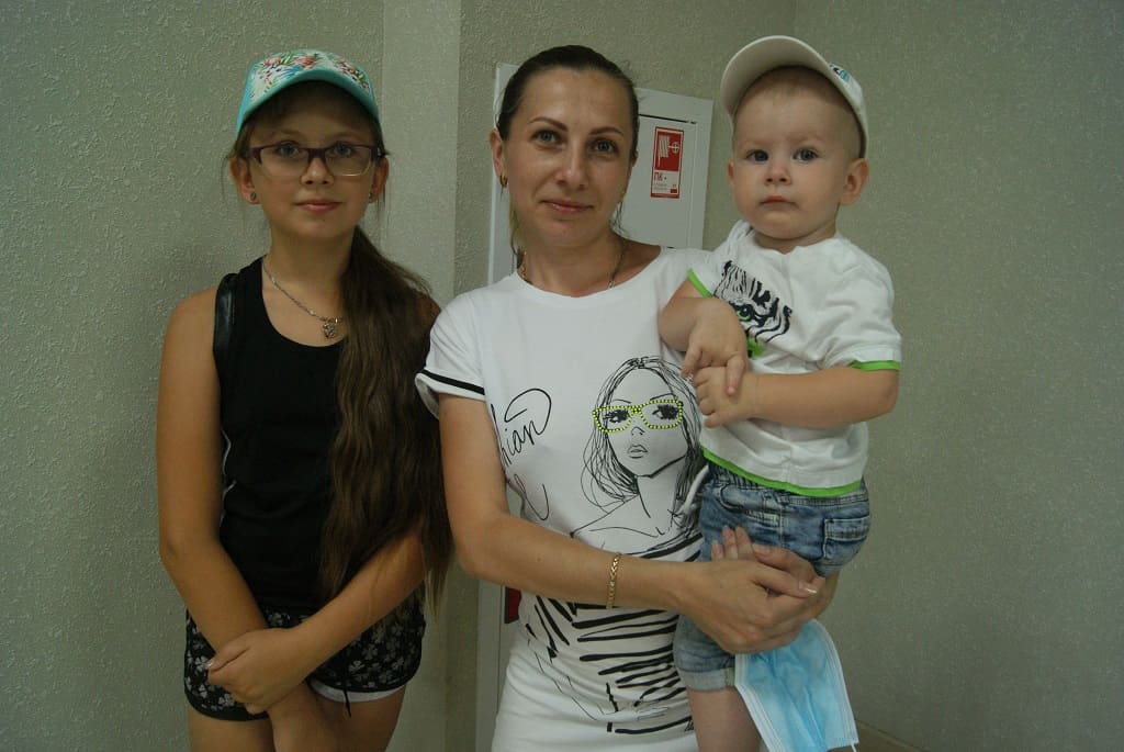 Светлана Бирюкова, мама троих детей, пришла в центр соцзащиты Ворошиловского района Ростова с дочерью Викой и сыном Димой. Дети очень рассчитывают, что в продуктовом наборе будет побольше сладостей.