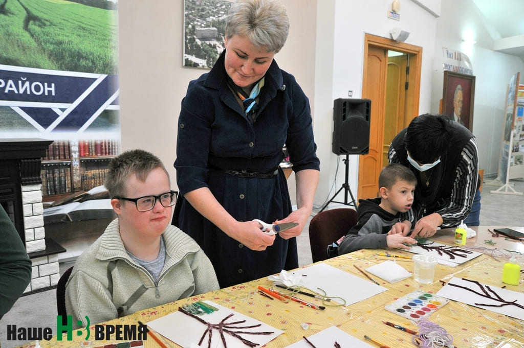 «Нарисуйте дерево и по контуру выложите ниточки», — на этих словах мы с фотокорреспондентом заходим в просторный библиотечный зал. Здесь дети из «Доброго сердца» осваивают новый вид творчества.