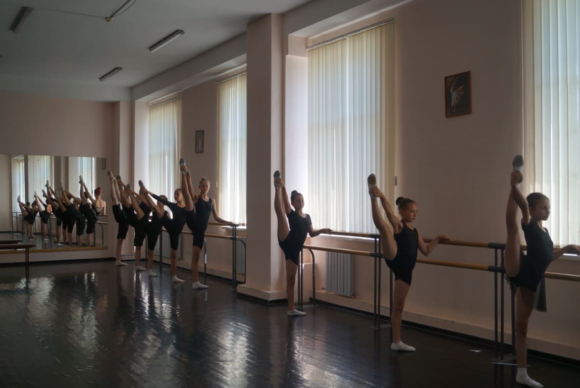 В хореографической смене мы попали на занятия по классическому танцу. Их проводят на базе Ростовского колледжа искусств. В этот раз в потоке — 8 человек, только девочки. С ними также ведут занятия по историко-бытовому танцу, гимнастике, гриму, теории, истории балета.