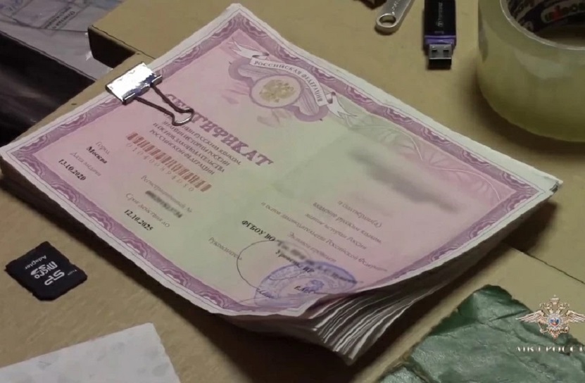 Такие липовые сертификаты заполнялись для мигрантов сотрудниками коммерческого центра. Источник фото: МВД России.