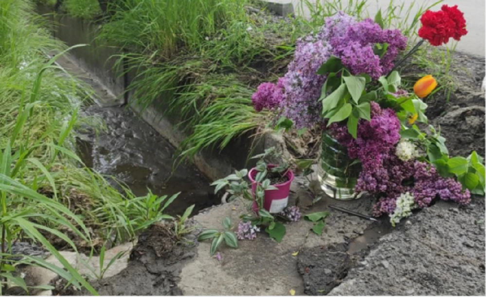 К водостоку, где погибла пожилая учительница, ростовчане несут живые цветы. Источник фото: "Комсомольская правда Ростов"