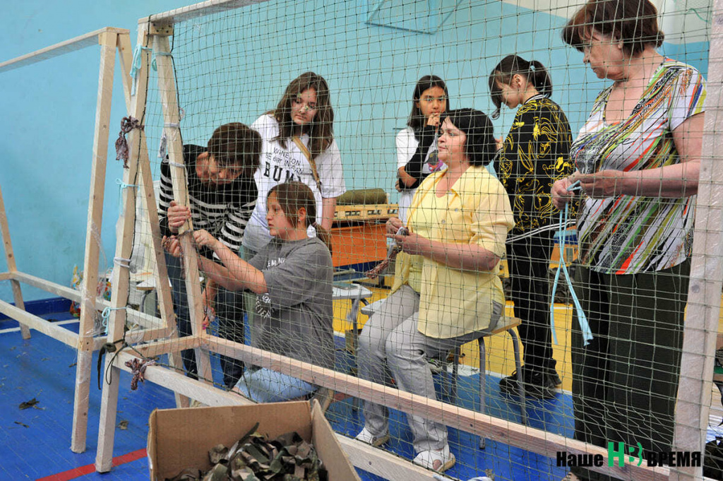 Но главные помощники в процессе —это, разумеется, школьники. Изначально планировалось, что плетением маскировочных сетей будут заниматься учителя: первопроходцами были несколько педагогов и школьный библиотекарь Татьяна Трухина. Потом в мастерскую все чаще начали забегать школьники — многих этот медитативный процесс заинтересовал настолько, что они без сожаления тратили на него все перемены.
