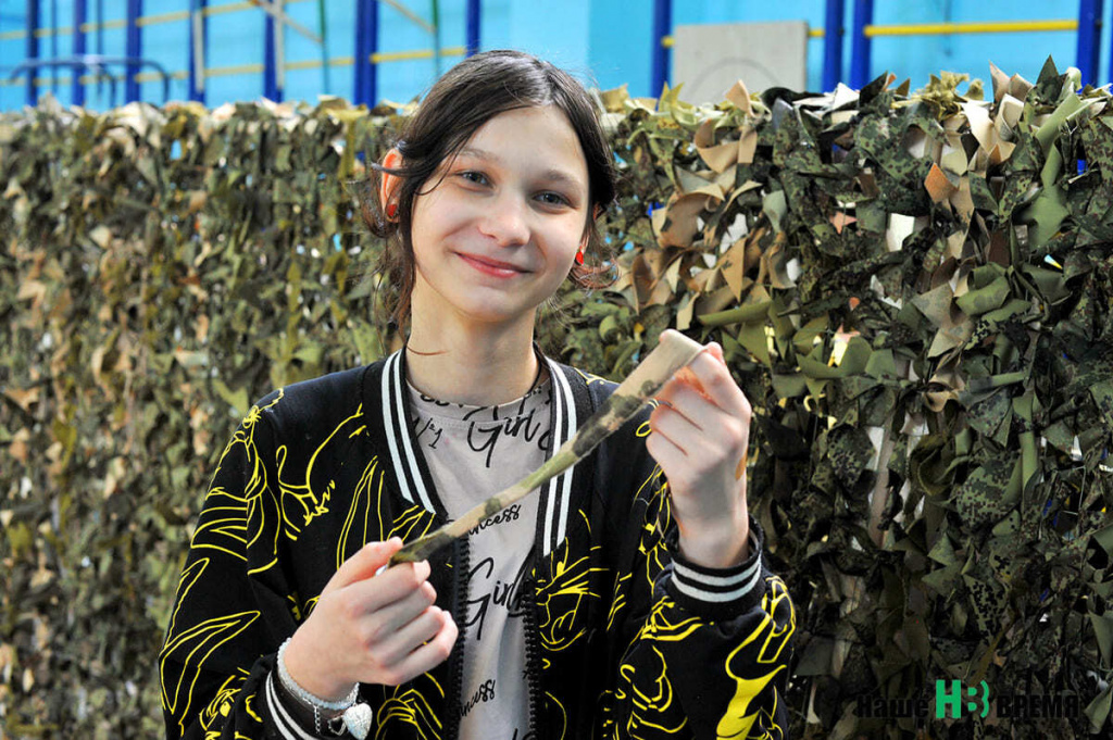 Причем, как отмечают не без удивления их учителя, экспертами непростого процесса создания маскировочных сетей подчас становятся не старшеклассники, а ребята 5-6-х классов. Например, только закончившая шестой класс Надежда Олейникова. Девочка знает практически все техники и нюансы плетения маскировочных сетей — и с легкостью делится знаниями.