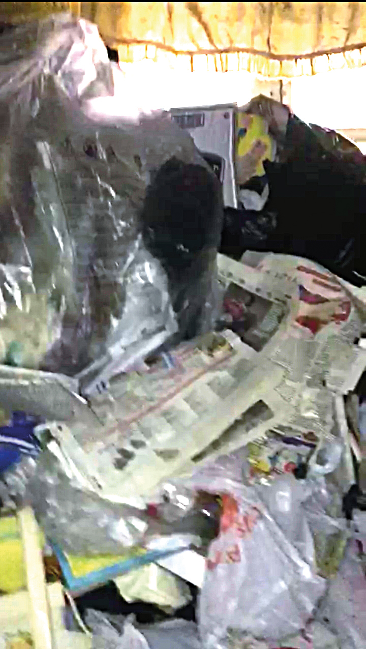 Одиноко проживающая в квартире пенсионерка открыла только участковому. Картина за ее спиной любого способна повергнуть в шок. От пола и почти до потолка все пространство по периметру завалено мусором, от которого исходит вонь. Остатки пищи, пустые бутылки, пакеты с непонятным содержимым, картонки...