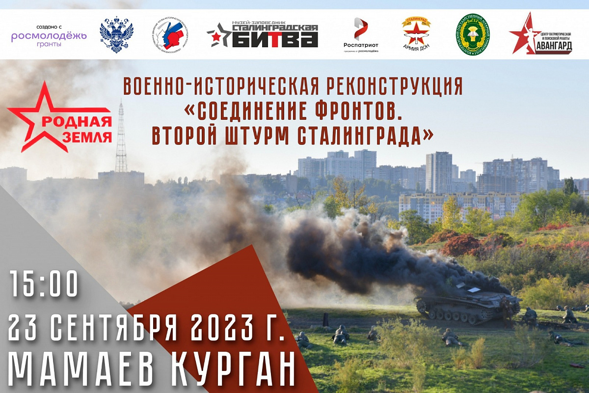 Более 100 реконструкторов из Волгоградской, Ростовской, Астраханской, Тамбовской областей и Краснодарского края показали один из эпизодов обороны Сталинграда, который в дальнейшем сыграл значимую роль в соединении фронтов и полном уничтожении немецкой группировки в городе.