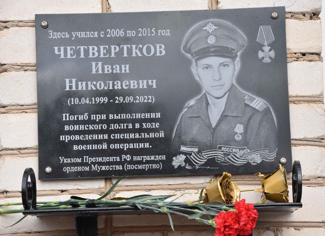 Церемония открытия мемориальной доски в память об отважном земляке Иване Четверткове состоялась в Большеремонтненской средней школе Ремонтненского района. Иван Николаевич учился здесь с 2006 по 2015 год.