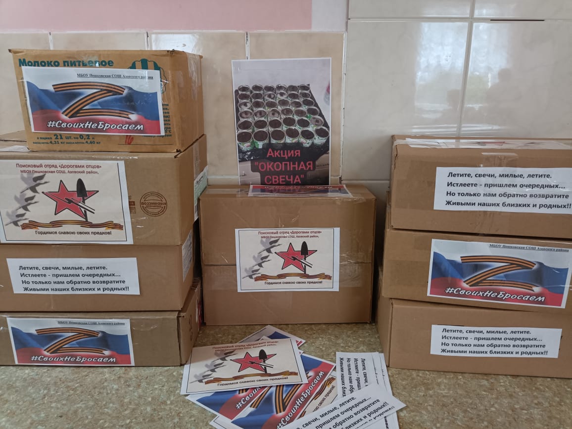 Поисковики отряда «Дорогами отцов» Пешковской школы Азовского района приняли участие в изготовлении блиндажных свечей для военнослужащих гвардейского полка, в котором служат и их земляки.