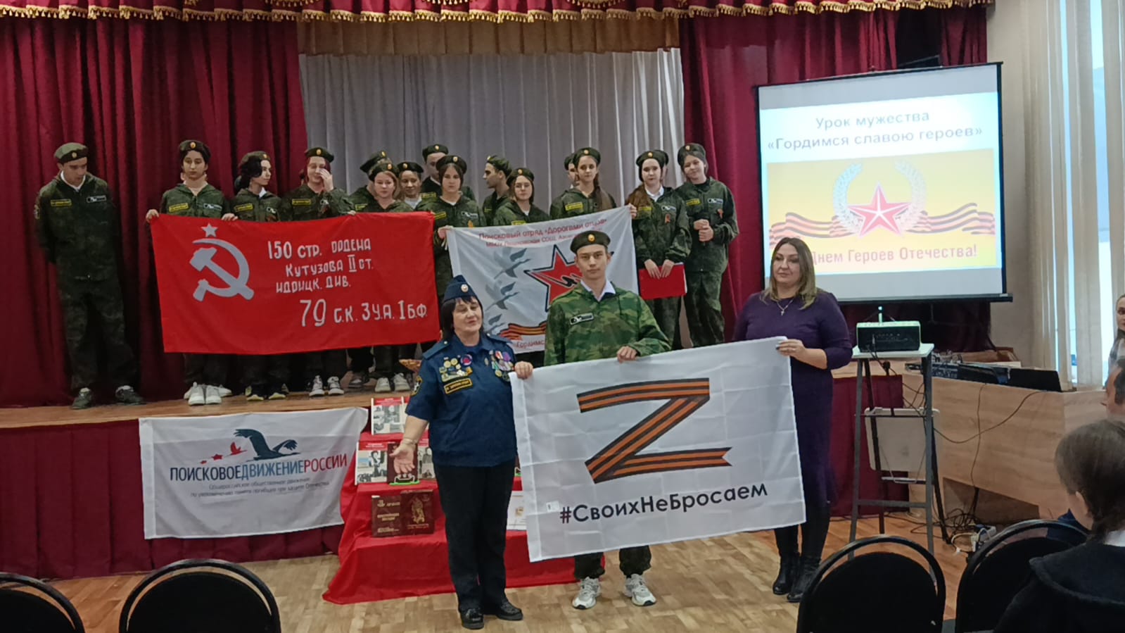 На уроке мужества в школе презентовали семейные «Книги Памяти». Дети представили биографии своих предков. Как уточнила Вера Кадченко, это долгосрочный проект. В этот день отряд «Дорогами отцов» также отчитался за свою работу в 2022-2023 годах. Поисковики, поднявшись на сцену, исполнили песню Павла Карабашлыкова «Вахта Памяти». Материалы экспедиций еще обобщаются. И вскоре будут представлены для проводимого «Нашим временем» конкурса «Мы помним» – пешковцы на предыдущих его этапах были победителями.