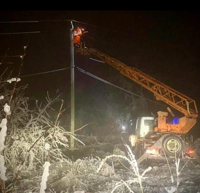 Восстановительные работы продолжаются непрерывно в круглосуточном режиме. Там, где это возможно, потребителей подключают по резервным схемам и к резервным источникам электроснабжения. Одновременно энергетики проводят плавку гололёда на проводах линий электропередачи 35-110 кВ.