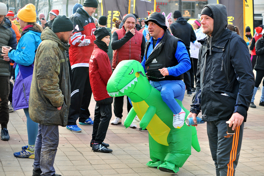 На этот раз их было не меньше, чем в прошлом году. Участников набралось тысячи две. В массовом кроссе «Побегай 1 января» участвовали физкультурники разного возраста. Было много родителей с детьми, серьезных спортсменов в полной беговой выкладке. Присутствовали и любители покрасоваться, почудить – они бежали в карнавальных нарядах разных стран и эпох.