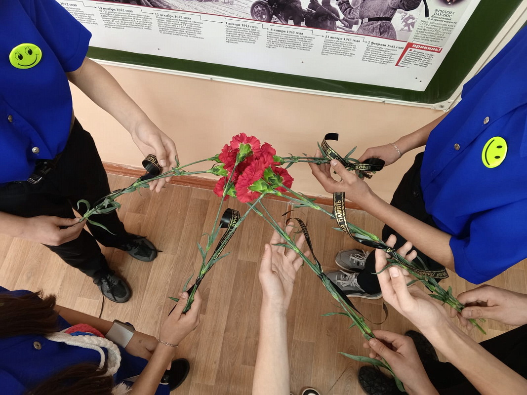 Во Владимировской школе Морозовского района отряды «Форсаж» (ЮИД) и «Патриот» (Юнармия) организовали акцию «Красная гвоздика». Ее приурочили ко Дню воинской славы – Дню разгрома фашистских войск в Сталинградской битве.