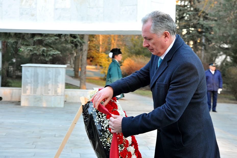 В первый день работы Форума делегация участников возложила цветы к Вечному огню мемориального комплекса «Павшим воинам».