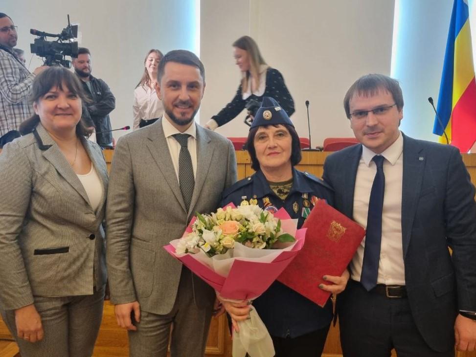 Руководителю поискового отряда «Дорогами отцов» Пешковской школы Азовского района Вере Кадченко на заседании коллегии комитета по молодежной политике Ростовской области вручили губернаторское поощрение. Ей объявили благодарность за большой вклад в поисковое движение и увековечение памяти погибших при защите Отечества на территории Ростовской области.