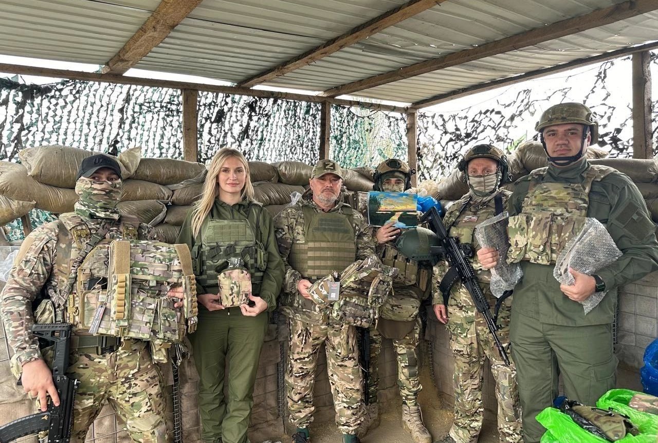 Донская делегация доставила в передовое подразделение элементы защитной экипировки — бронеплиты, разгрузки, шлемы и фонари к ним, активные наушники, тактические очки и часы. А Наталья Давыдова вручила бойцам специально нарисованные для них донские пейзажи — подарок от женского клуба «Единой России», объединяющего мам детей с инвалидностью.