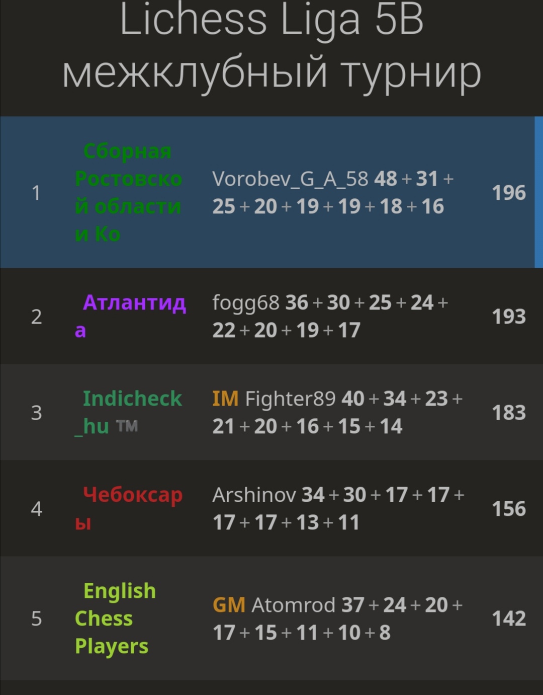 Выиграв этот турнир, сборная Ростовской области выступит теперь в более престижной серии Lichess Liga.