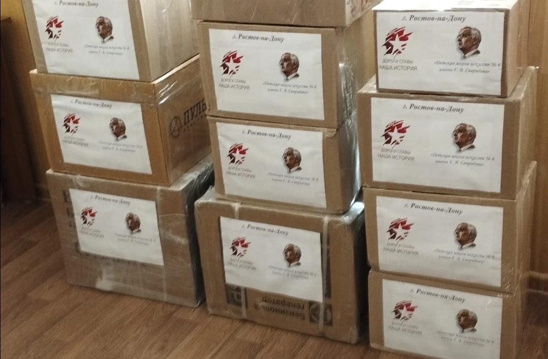 Команда Ростовского регионального патриотического общественного движения «Дороги славы — Наша история» и преподаватели МБУ ДО ДШИ № 6 имени Г. В. Свиридова (Ростов-на-Дону) отправили для участников СВО гуманитарный груз.