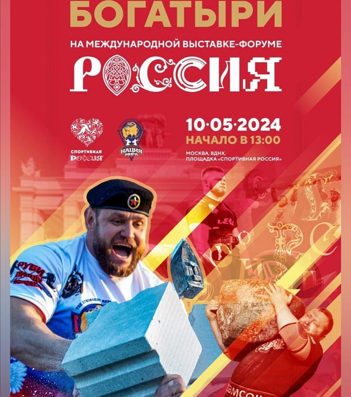 10 мая ВДНХ под эгидой Международного богатырского движения «Сильнейшая нация мира» состоится фестиваль «Богатыри на международной выставке-форуме Россия». Он приурочен ко Дню Победы.