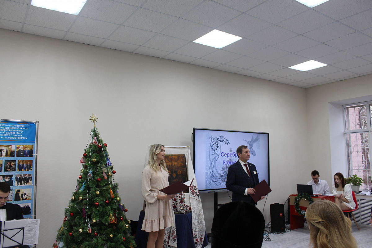 В новом читальном зале библиотеки Института сферы обслуживания и предпринимательства (филиала) ДГТУ в г. Шахты торжественным мероприятием завершён Рождественский научно-просветительский литературно-музыкальный проект «Серебряное Рождество 2025».