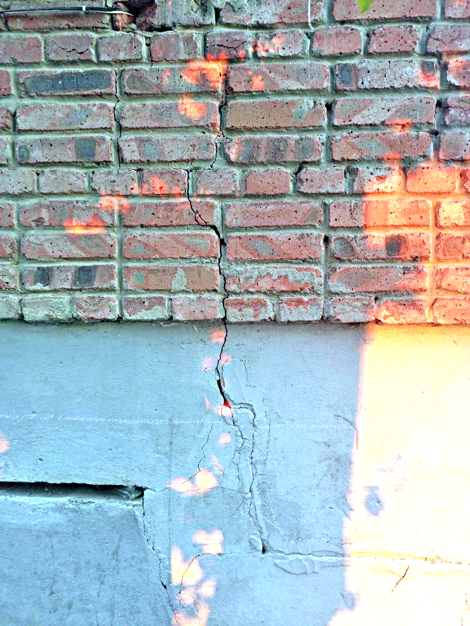 Косметический ремонт цоколя в доме сделали, а в яму просто залили бетон. Но проблему это не решило: трещина пошла по фундаменту, вверх по фасаду дома. Треснул и тротуар.