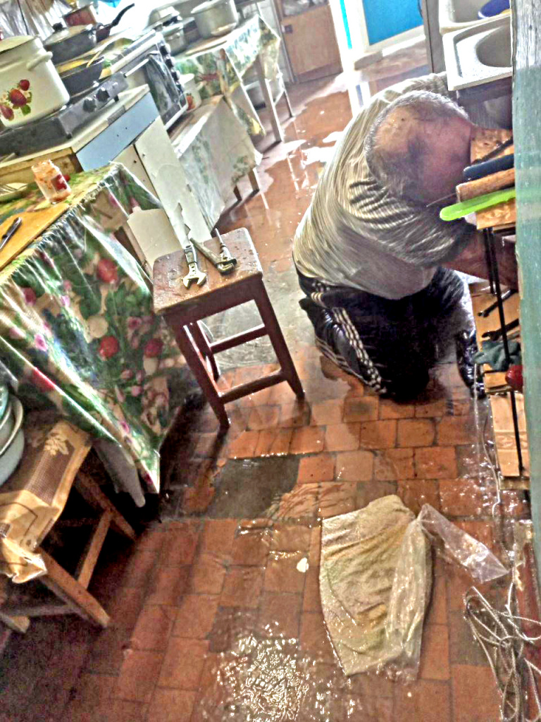 На пятом этаже разрастаются дыры в полу. Начали лопаться трубы. Жильцы с огромным трудом самостоятельно справились с аварией, – напоминаем, что УК так и не передала им ключи от подвала…