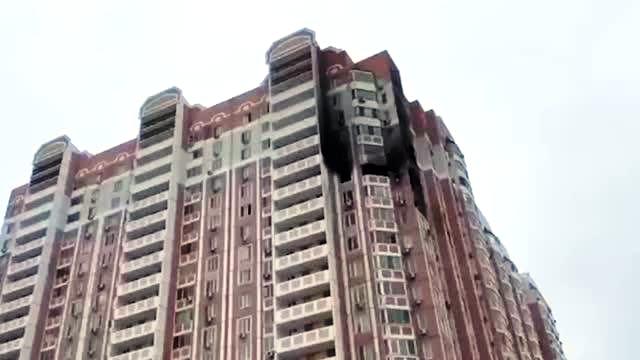 Квартира на 14-м этаже левенцовской высотки, где жил погибший Сергей с семьей, полностью выгорела. Источник фото: ТАСС.