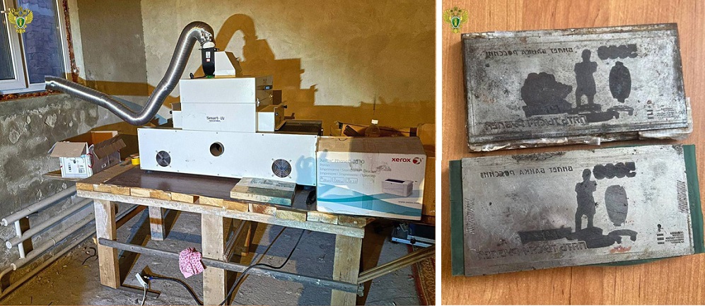 Печатное оборудование и клише, использовавшиеся членами банды фальшивомонетчиков для изготовления поддельных купюр. Источник фото: Генпрокуратура России.