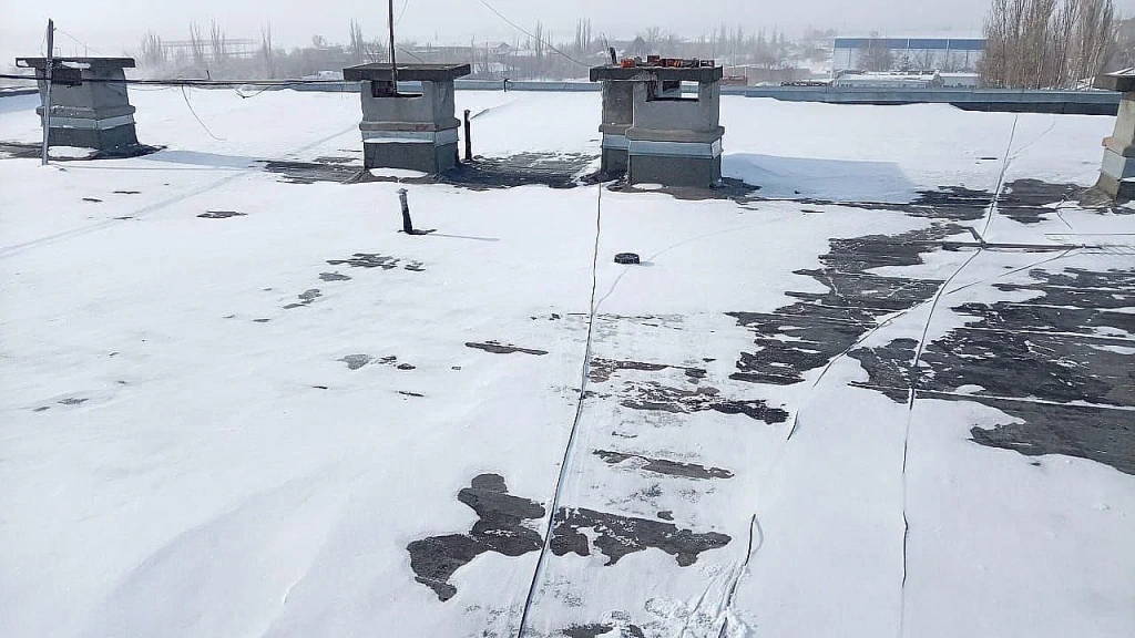 На крыше многострадального дома лежит снег, который уже начинает подтаивать. В квартирах скоро побегут ручьи по стенам и потолкам