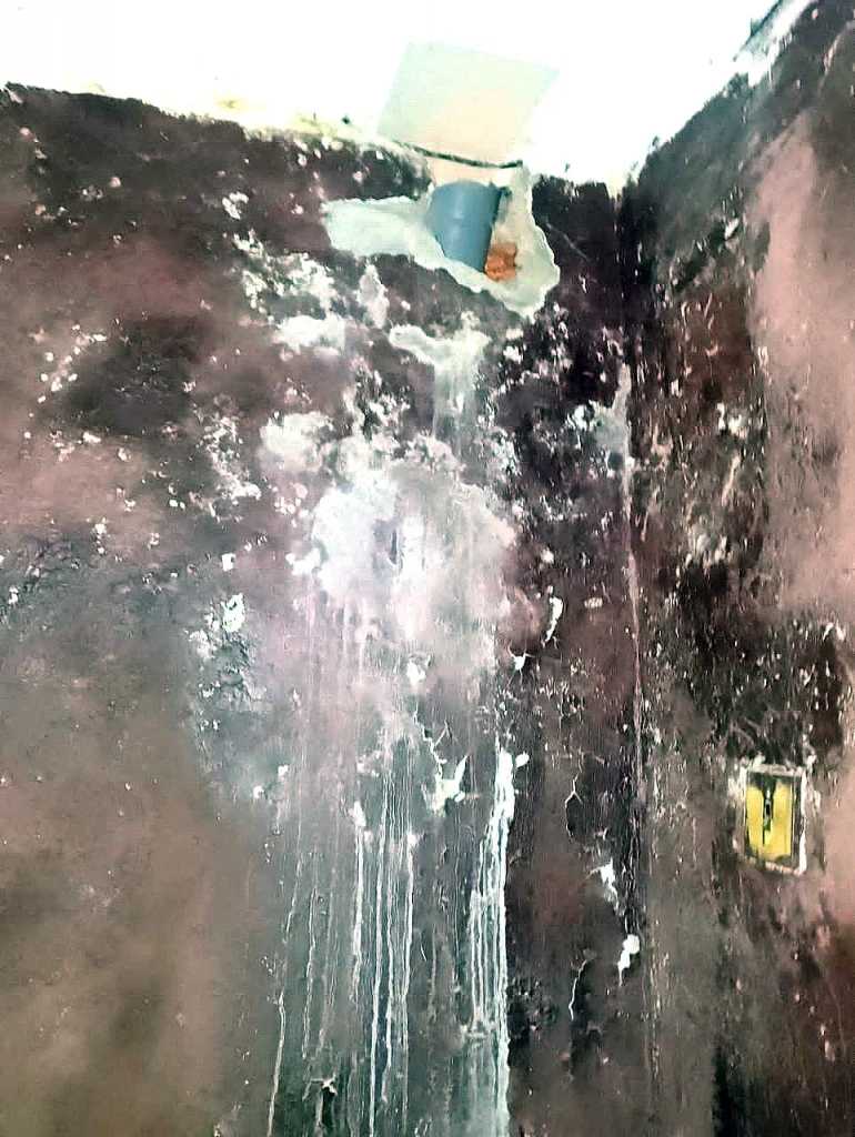 В общем, целого и исправного в доме не нашли практически ничего. Канализация, например, исправно протекает, сточные воды скапливаются в подвале. Электропроводка периодически замыкает, пожары уже были. Топило дом из-за порвавшихся водопроводных труб тоже не раз. После очередного дождя со снегом с новой силой потекла крыша.