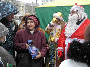 В новогодние праздники в бесплатную столовую для малоимущих, расположенную на западном развороте Центрального рынка в Ростове, пришел Дедушка Мороз