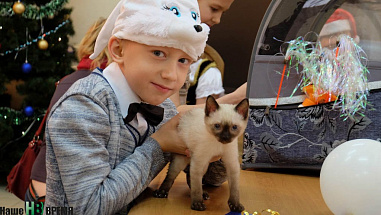 На елке, которую провели газета «Наше время» и центр фелинотерапии «Кэтс – планета доверия» для ребят из общественной организации «Огонек надежды», главными героями стали кошки-крошки