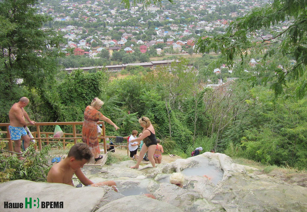 А в «Пятигорье» – прекрасный парк, где можно кататься на роликах (привезли с собой), на скейтборде – брал у друзей, которыми обзавелся очень быстро, и на велосипеде – дают напрокат. Кстати, детворы и подростков на каникулах там много. Оказывается, гастрит и остеохондроз-сколиоз наше подрастающее поколение с ранних лет заедают. И вот целая компания ребятни от 7 до 12 лет, отработав все процедуры (разного вида души, массаж, лечебную физкультуру, ингаляции, дарсонваль, ванны, грязи), после обеда устраивала игры, соревнования. А еще ходили на экскурсии. Побывав в домике Лермонтова, взяли в библиотеке его стихи. Внук стихи не очень любит, но начал читать. Экскурсоводом была библиотекарь санатория – увлекла. Еще одно послеобеденное развлечение – посещение «народных ванн». Здесь их называют бесстыжими. Я думаю, потому что нет места, где переодеваться. Но мы сразу приспособились. В этих природных ваннах (они горячие сероводородные) народ с давних лет лечился. При нас прибежала одна бабуля далеко за восемьдесят, под многочисленные приветствия местных (туда приезжает много жителей Пятигорска), сообщила, что она уже обошла Машук (есть там такой пешеходный маршрут). Я спросила у мужчины интеллигентного вида, почему бабуля такая популярная.