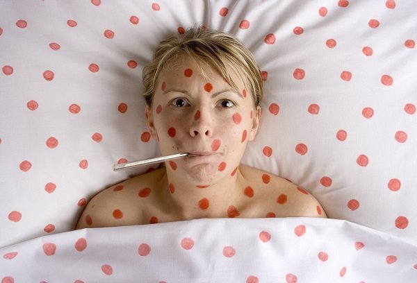 Начинается корь, как обычная простуда или грипп: высокая температура, головная боль, слабость, отсутствие аппетита. Потом появляются насморк и кашель, возможен конъюнктивит. Характерную для кори сыпь на лице и за ушами видно только на 4-5 день болезни. Позже она распространяется на туловище, сгибы рук и ног.
