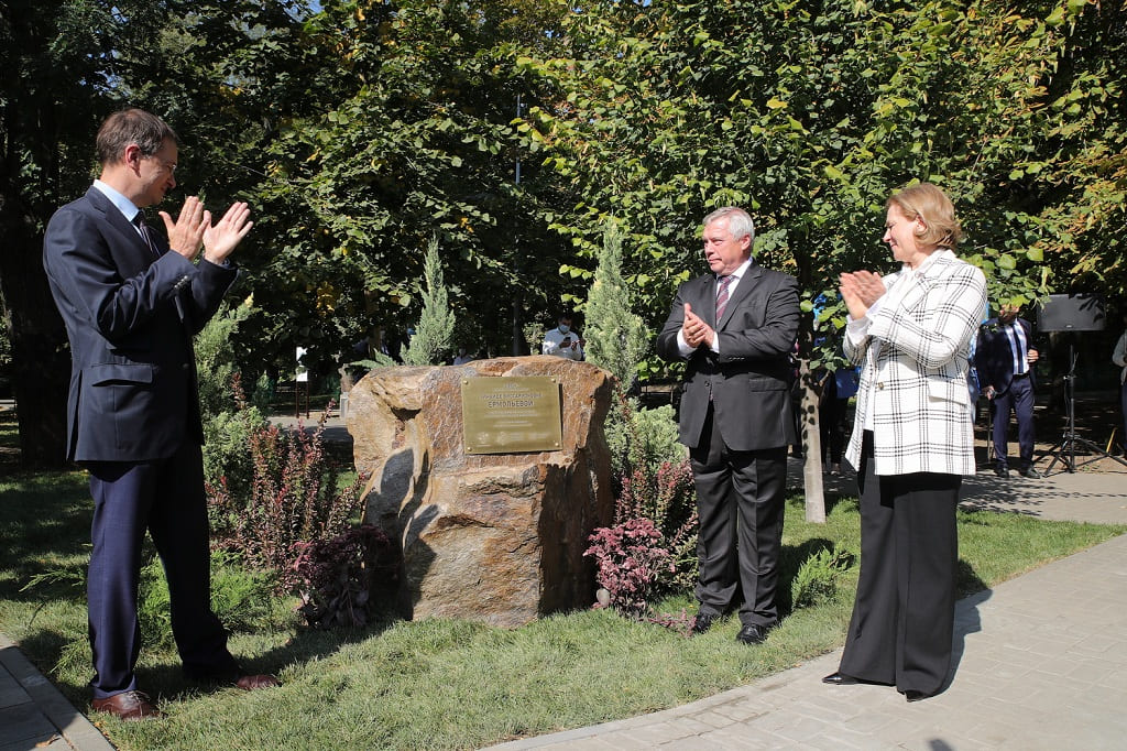 В закладке памятного камня микробиологу приняли участие помощник Президента РФ Владимир Мединский, главный санитарный врач РФ Анна Попова, губернатор Ростовской области Василий Голубев.